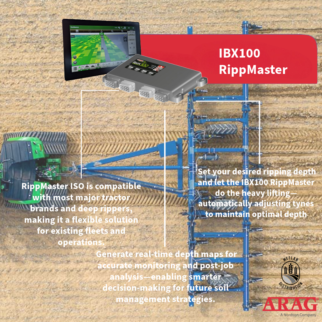 The IBX100 RippMaster is a precision ISOBUS control system engineered to optimise deep ripping operations with real-time automation, simple integration, and intelligent soil management.